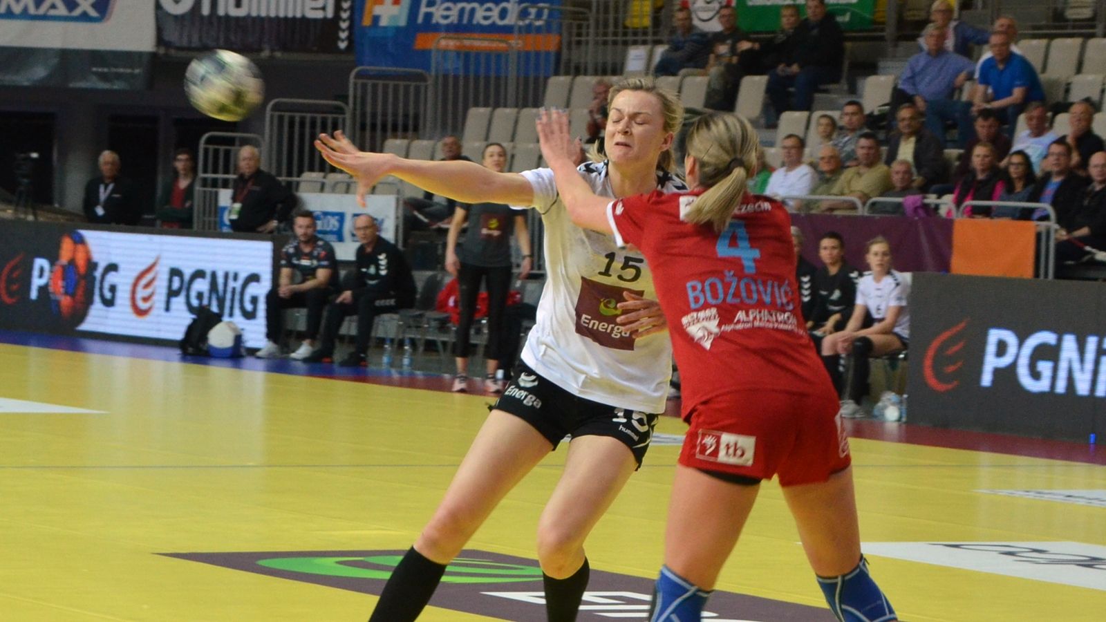 SPR Pogoń: Pruenster, Wawrzynkowska, Krupa - Płomińska 3, Bozović 1, Cebula 5 (2/2), Urbańska, Janas 1, Wołoszyk 1, Szynkaruk 2, Dezic 5, Kochaniak 2, Agbaba 4, Blazević 3.