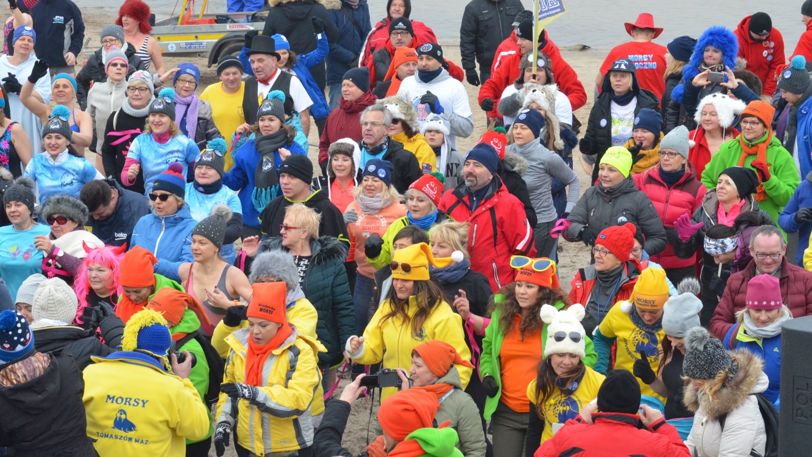Miłośnicy zimnych kąpieli przyjechali do nadmorskiej miejscowości z całej Polski. Dziś wzięli udział m.in. w morsowym biegu po plaży oraz tańcu przeciwko przemocy.