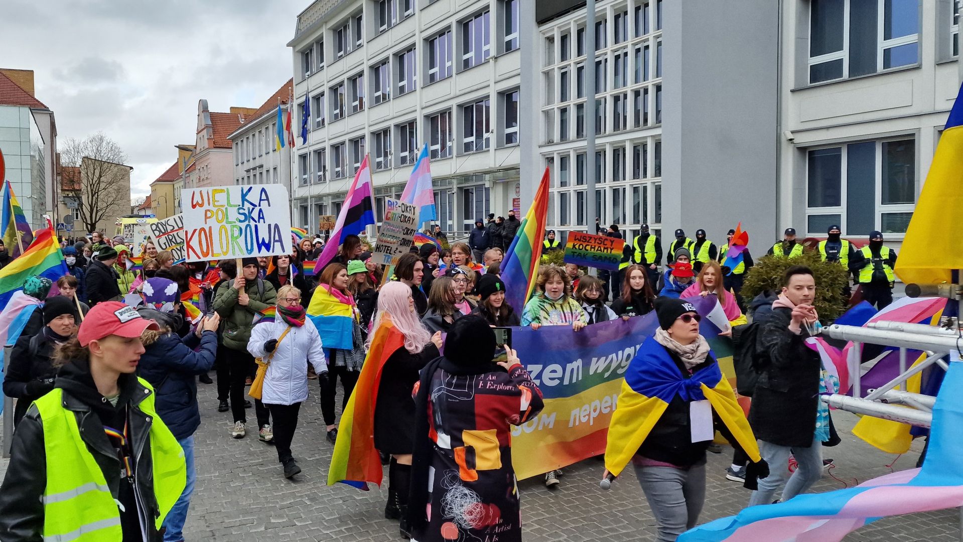 - W naszym mieście jest coraz więcej uchodźczyń i uchodźców, dlatego chcieliśmy, oprócz tęczowych flag lokalnej społeczności LGBT+, mieć ze sobą flagi Ukrainy - przekazała Młynarczyk-Wezgraj. - Dzisiejszy marsz, ze względu na trwającą wojnę i chęć solidaryzowania się oraz łączności z obywatelami Ukrainy, nie jest aż tak zabawowy - zrezygnowaliśmy z tradycyjnej imprezy organizowanej po marszu - dodała.