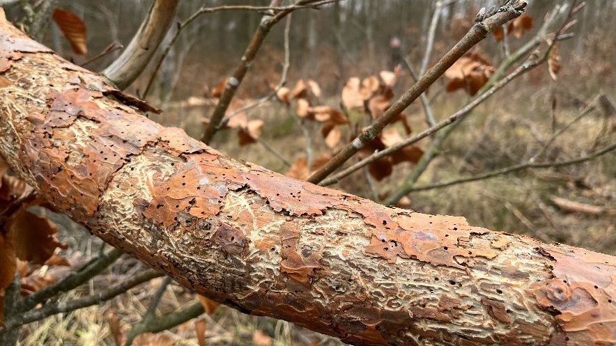 - Kornik ostrozębny jest to niewielki, zaledwie trzymilimetrowy owad. Jest jednak jednym z najgroźniejszych szkodników atakujących sosny. Kontrolując drzewostany trzeba szczególnie zwrócić uwagę na korony drzew, ponieważ żeruje on w górnych partiach, tam gdzie kora jest bardzo cienka - powiedziała Natalia Bulczak, podleśniczy z Leśnictwa Janowo.