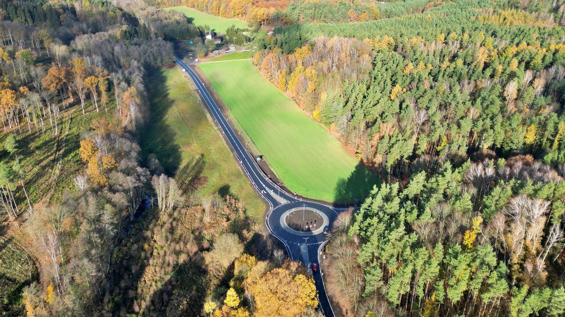 Ponad 16 km trasy poszerzonych zostało do dziewięciu metrów. Wybudowano zatoczki autobusowe oraz chodniki.