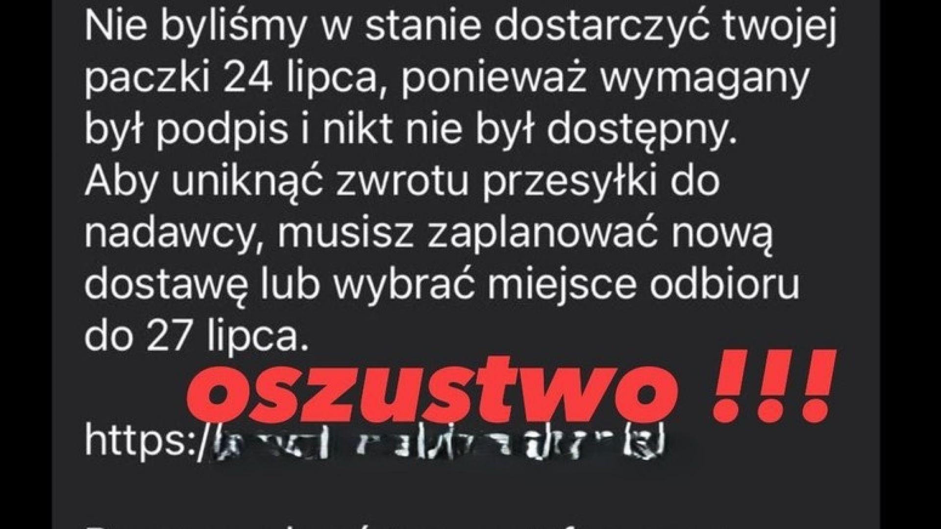 Kliknięcie w podany w wiadomości link może skutkować przekierowaniem na fałszywą stronę internetową, która łudząco przypomina oryginał.