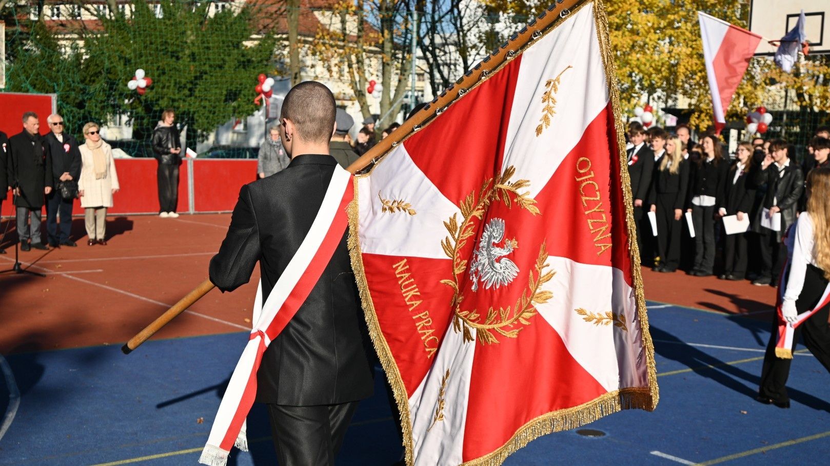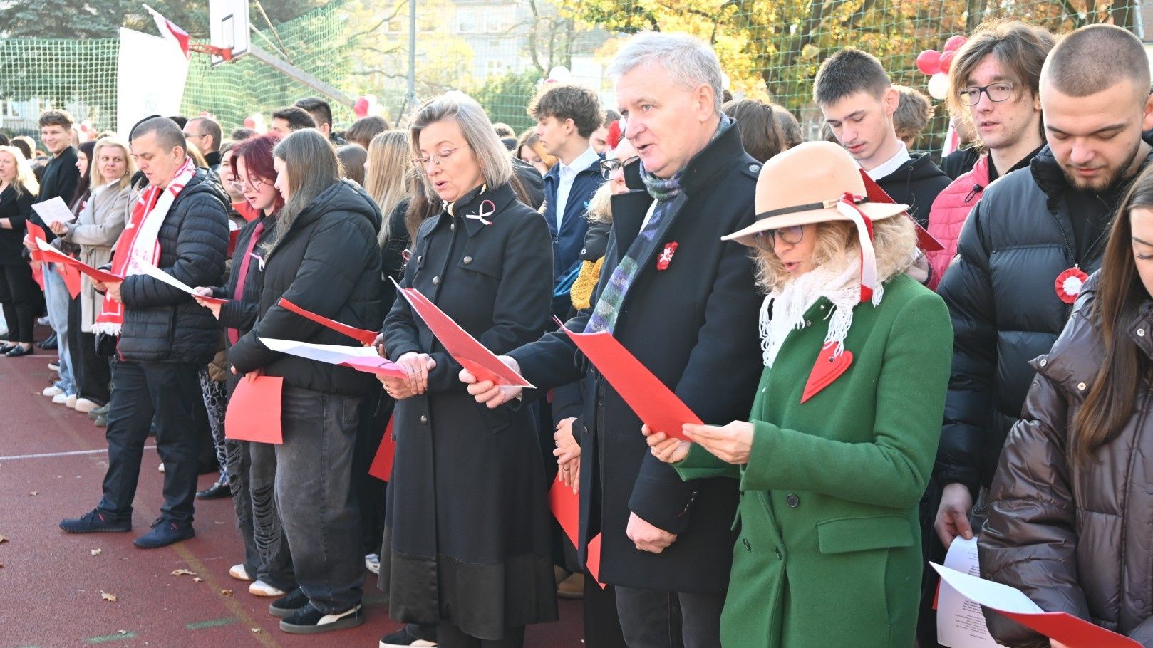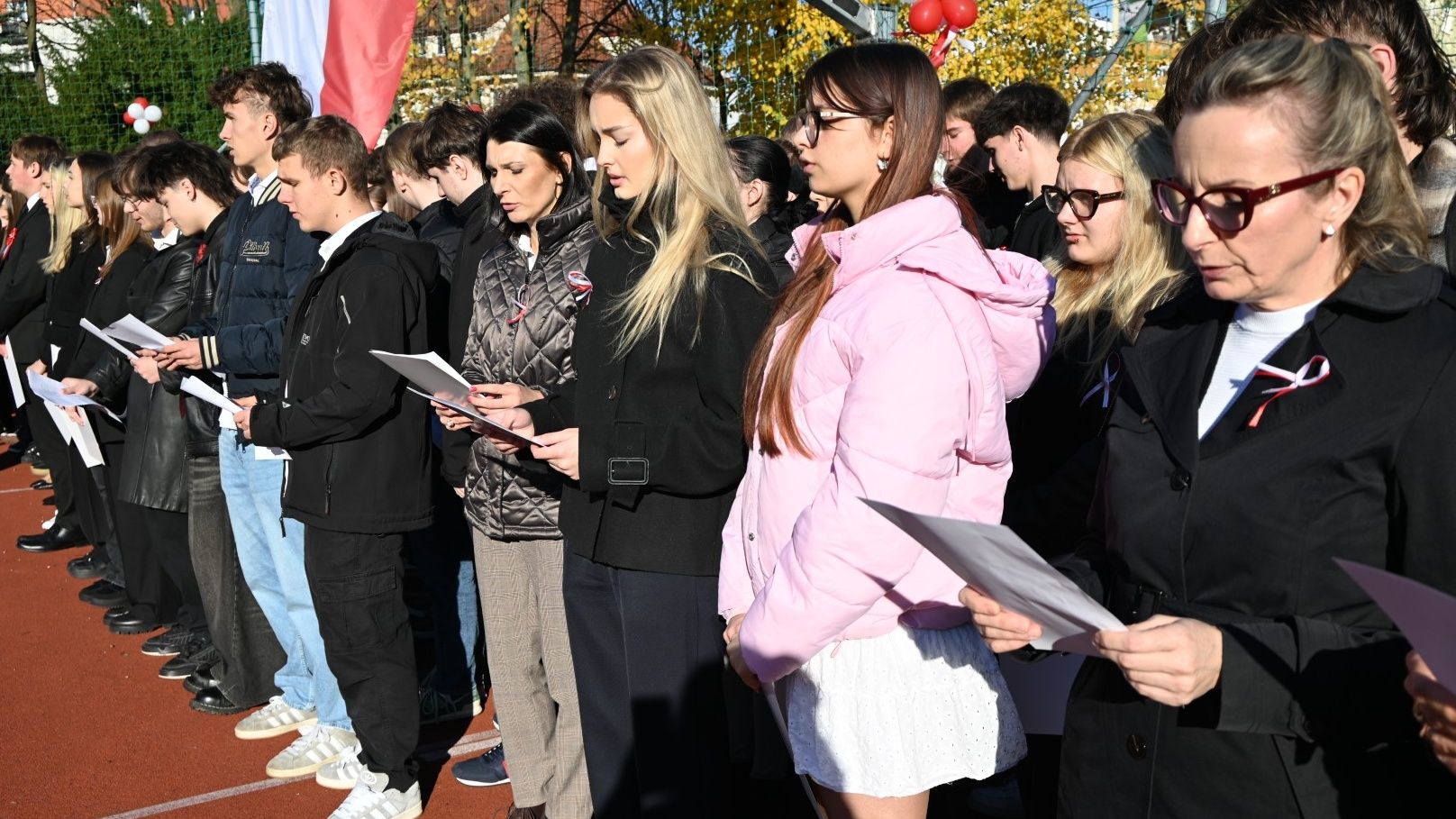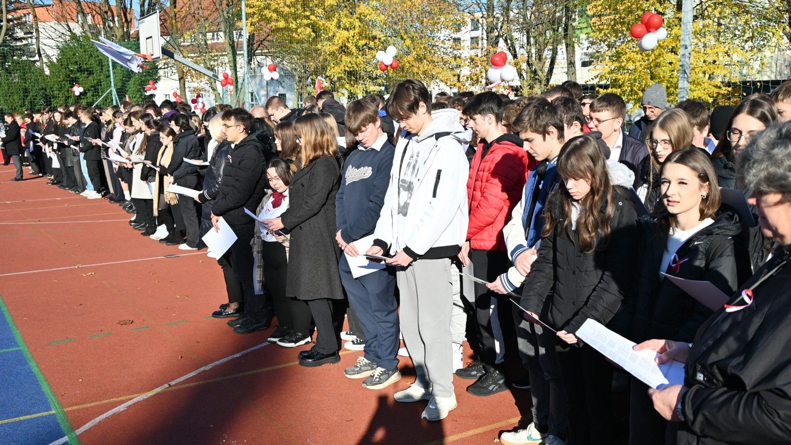 Uroczystości została zwieńczono utworzeniem biało-czerwonej flagi przed całą szkolną społeczność.