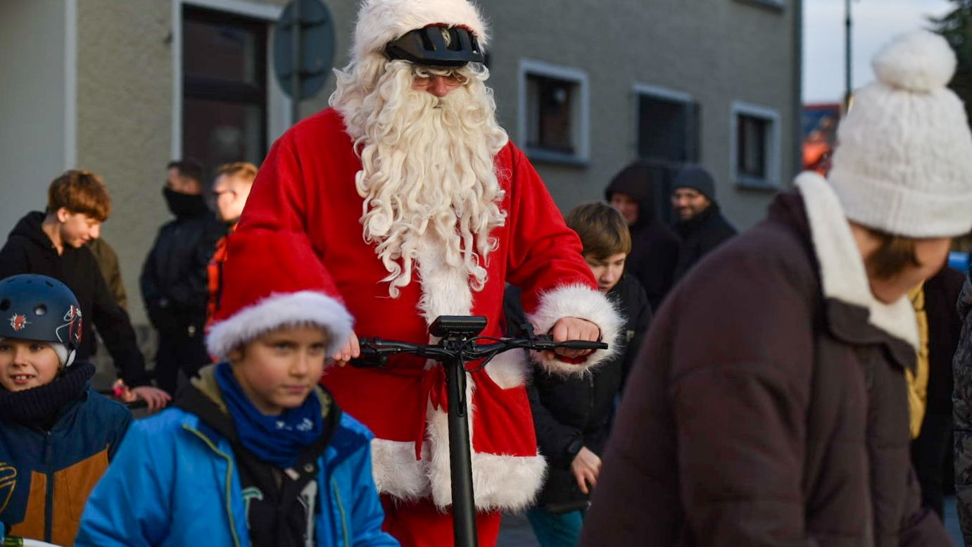 Tegoroczną Laponię rozpoczęły występy dzieci z darłowskich przedszkoli, które śpiewaniem kolęd wprowadziły mieszkańców w bożonarodzeniowy nastrój. Po godzinie 14 na rynek wjechał długo wyczekiwany Święty Mikołaj - tym razem nietypowo, bo na hulajnodze, zachęcając najmłodszych do bezpiecznej jazdy i noszenia kasków.