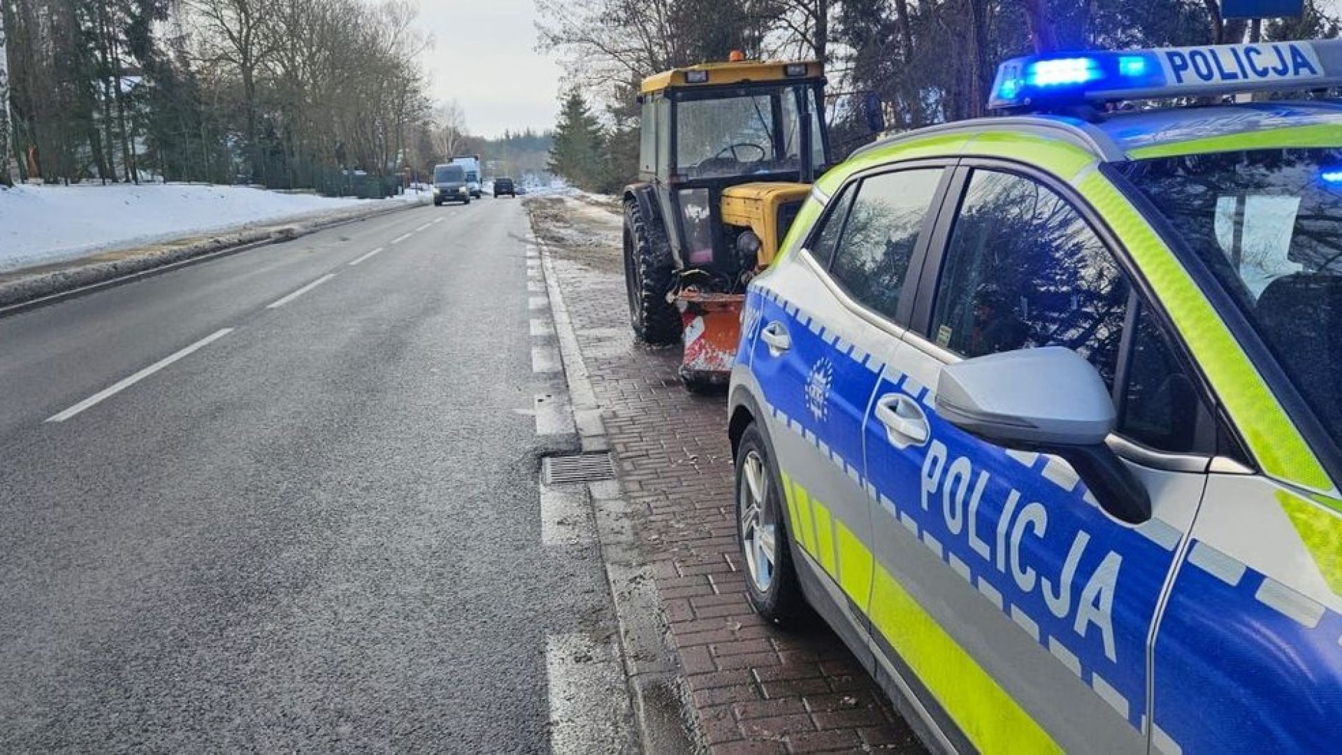 Do dyżurnego szczecineckiej policji wpłynęło zgłoszenie o zdarzeniu drogowym przy ulicy Cieślaka. Kierujący ciągnikiem z pługiem miał doprowadzić do kolizji i uciec z miejsca zdarzenia. Po zatrzymaniu okazało się, że 55-letni kierowca był nietrzeźwy.