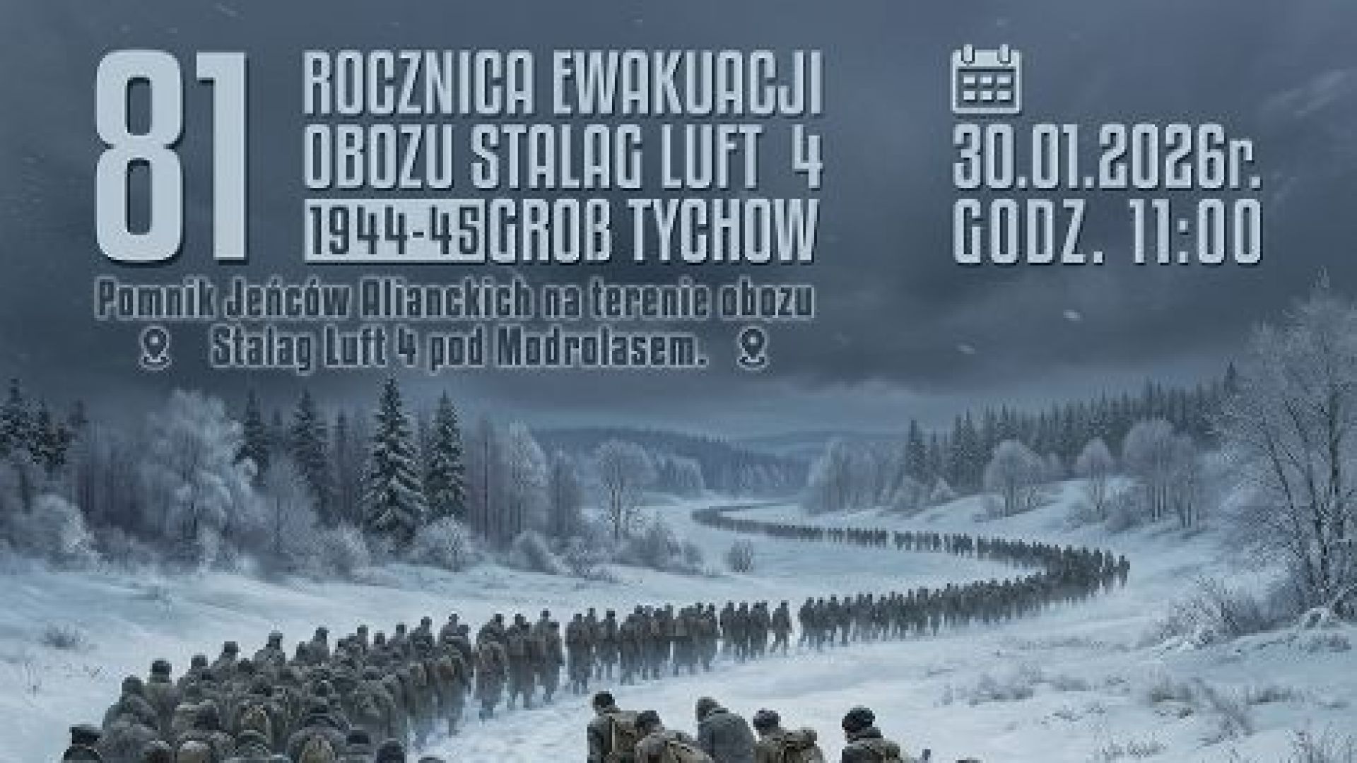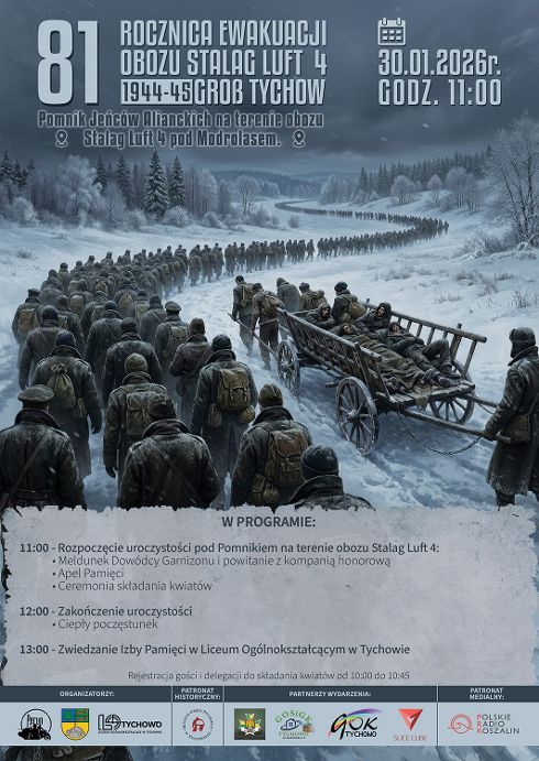 11.00 - rozpoczęcie uroczystości pod Pomnikiem na terenie obozu Stalag Luft 4.