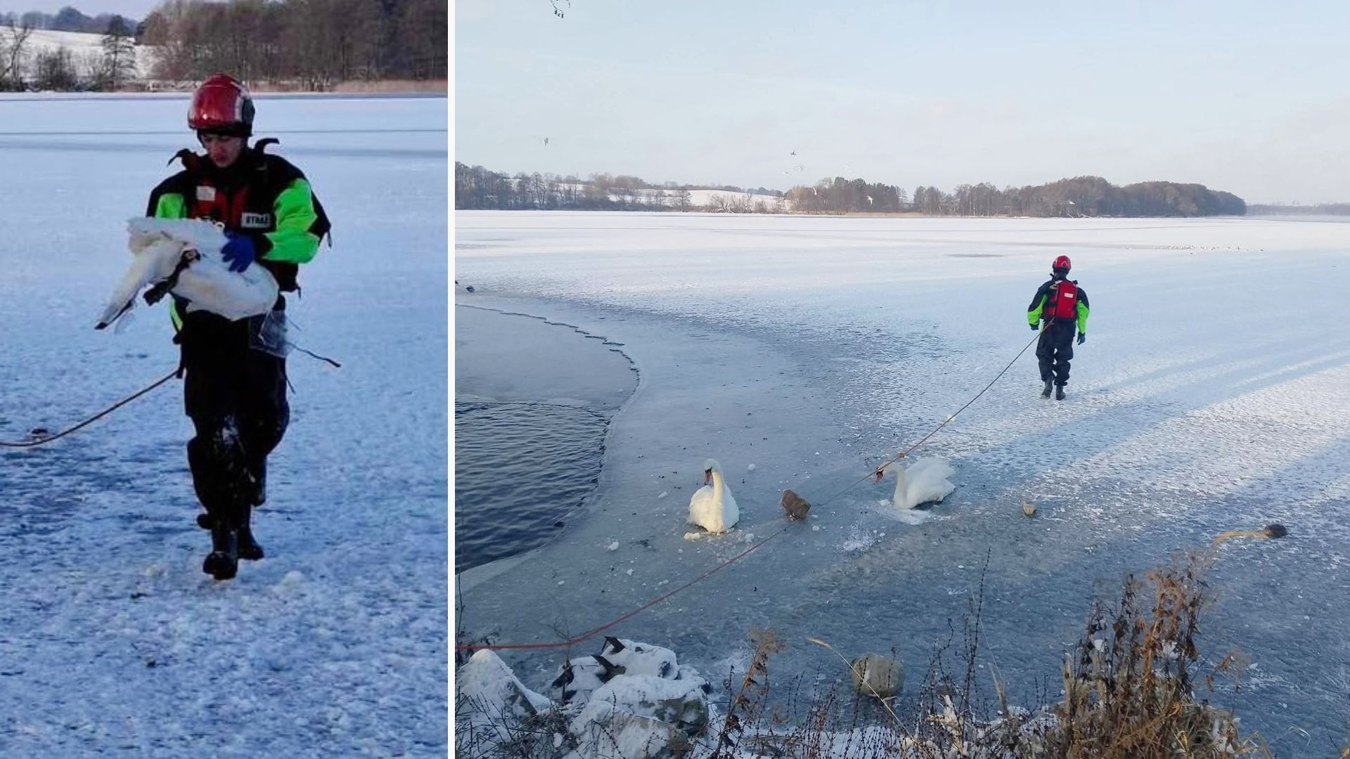 Dwa ptaki znajdowały się na skutym lodem jeziorze Drawsko. Niestety, jednego nie udało się uratować.