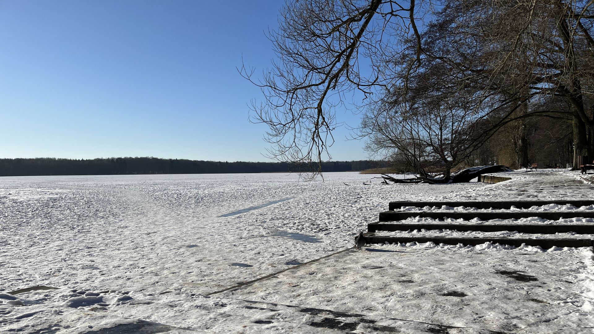 Zamarznięte jezioro Trzesiecko stało się w ostatnich dniach popularnym miejscem spacerów. Niskie temperatury sprawiły, że lód pojawił się na całej powierzchni akwenu, który rozciąga się przez niemal całe miasto. Dzięki temu zbiornik jest łatwo dostępny dla mieszkańców, niezależnie od miejsca zamieszkania.