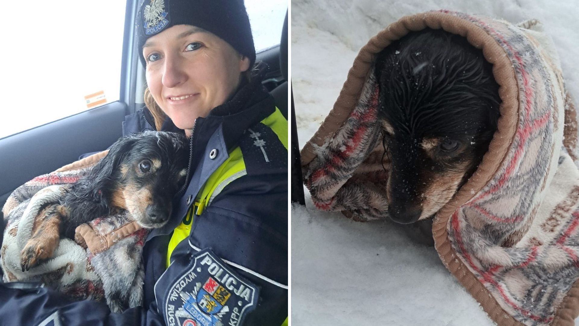 Na miejsce skierowano policjantki ruchu drogowego. Kierowca pokazał im zdjęcie zwierzęcia, które zdążył zrobić tuż po zdarzeniu. Funkcjonariuszki szybko odnalazły psa - leżał za płotem sąsiedniej posesji, częściowo przysypany śniegiem. Zwierzę było skrajnie wyziębione, miało drgawki i bezwładne tylne łapy.