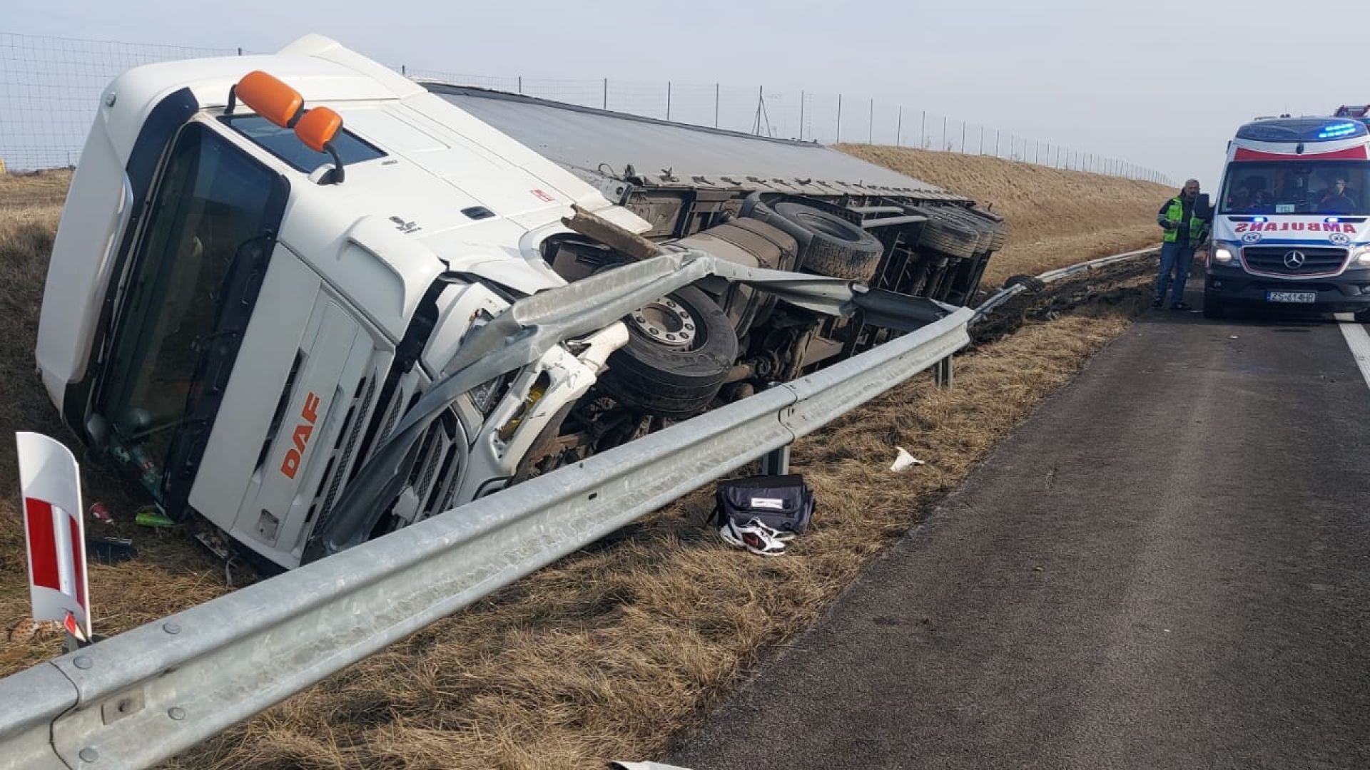 Do zdarzenia doszło w piątek około południa na trasie S6 w kierunku Szczecina. Na 112. kilometrze drogi, w rejonie węzła Dobrzyca-Borkowice, doszło do wystrzału opony w ciągniku siodłowym.