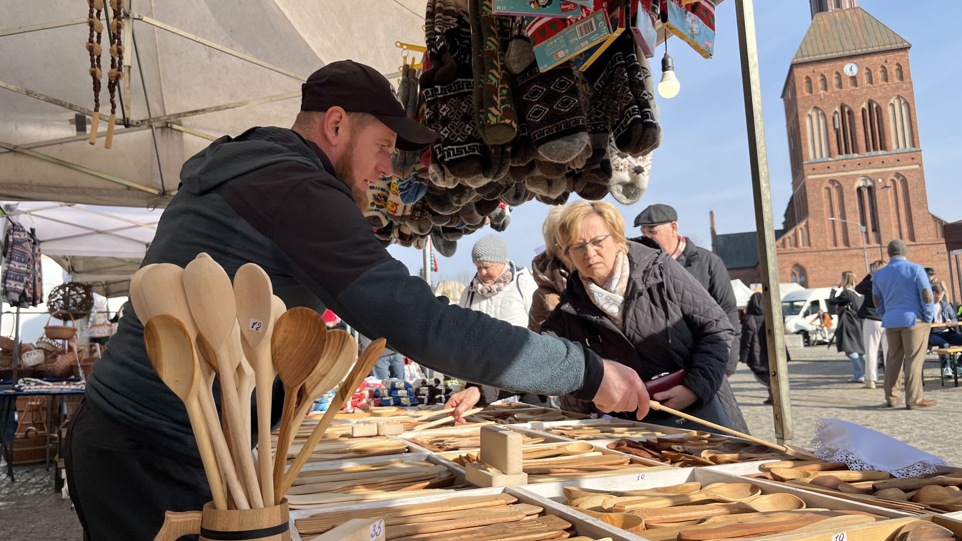 Wystawcy jarmarku na rynku w Świdwinie oferują szeroki asortyment, od przysmaków po ozdoby wielkanocne. - Zajączki ze słomy, palmy prosto z Wilna, bieżniki, obrusy, serwetki czy drewniane tace i podstawki – wymieniają sprzedawcy.